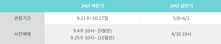 - 9월 표는 9/4일부터 예매가 시작이고 10월 표는 9/25일부터 예매가 시작입니다.