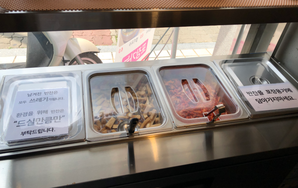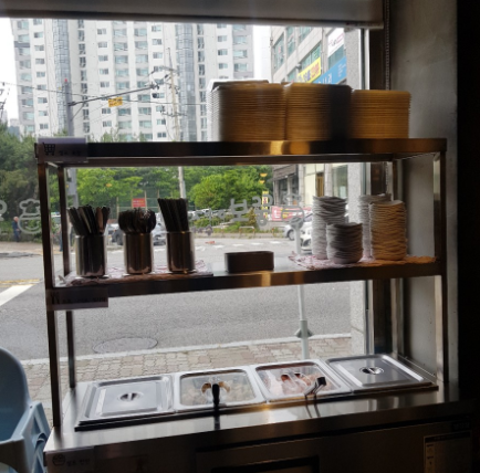 셀프 바가 있어서 식기, 반찬 등을 가져가 먹어야 해요.
