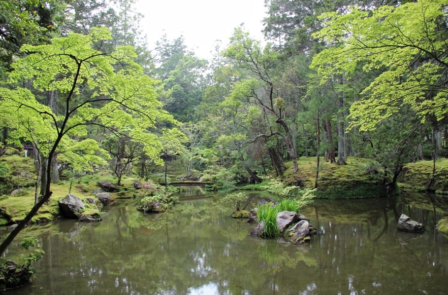 이러한 정원에는 헤이안(平安), 가마쿠라(鎌倉), 무로마치(室町) 시대의 사찰이나 큰 저택이 있습니다. 무로마치 시대의 승려 '무소소세키'가 만든 교토의 '사이호지(寺)'의 정원은 전형적인 '회유 임천식'정원입니다. 이 정원은 배경의 산을 이용하여 연못이 자연적으로 조화되도록 디자인되었습니다.