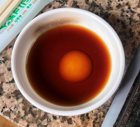 간장에 겨자를 넣어 섞어서 오리와 야채를 찍어 먹는 소스에요.~