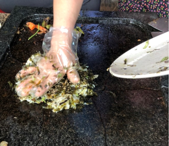 오리고기를 다 먹고 나면 사장님께서 볶음밥을 돌판 위에
