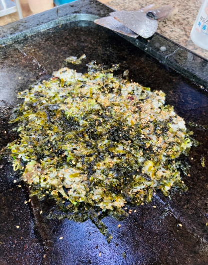 돌판에 눌린 누룽지 같은 볶음밥은 고소한 참기름과 짭짤한 김가루와 듬뿍 뿌린 깨가