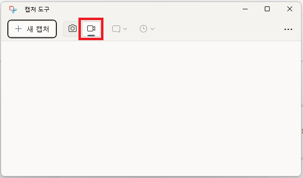 b. 캡쳐 도구 상자의 윗부분에 도구 아이콘에서 스크린샷 우측의 캠코더 모양의 아이콘을 눌러 영상 녹화로 바꿔 줍니다.