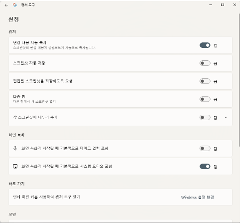 캡처 도구에서는 그 동안 스크린샷 기능만 있었는데 이제 녹화 기능도 추가 되어 사용할 수 있게 되었습니다.