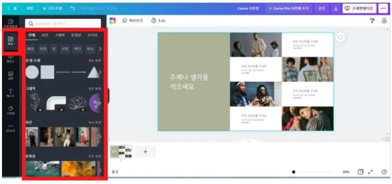 3. 풍부한 이미지 및 그래픽 라이브러리: 무료 이미지, 아이콘, 일러스트레이션이 가득해 원하는 디자인을 쉽게 완성할 수 있어요.