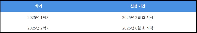 - 신청 기간 : 정해진 신청 기간 내에 신청해야 하며, 기간을 놓치면 신청이 불가능합니다.