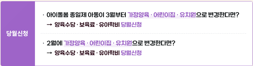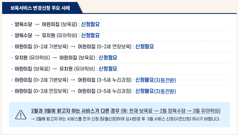 - 보육 나이 기준이 변경되는 아동은 자동 전환되므로 별도 신청이 필요하지 않을 수 있습니다.